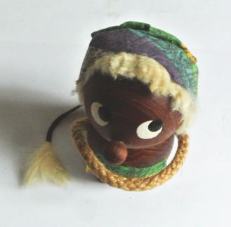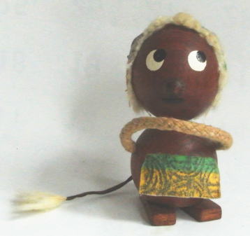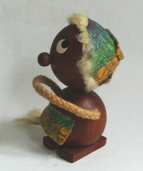 スウェーデン製 チーク製のトロール(北欧の妖精) 1900年代中期頃のもので帽子をかぶってエプロンのようなものをつけています。 尻尾は革 髪の毛 尻尾の先はウサギの毛とおもわれます
