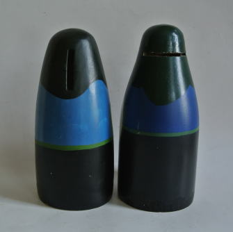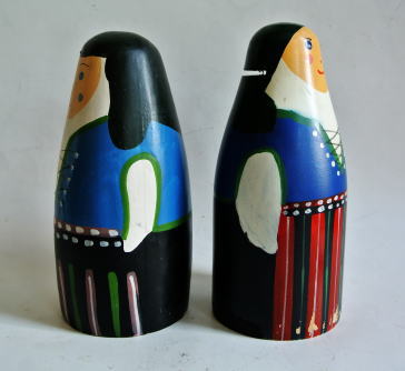 | 画像右側はTorna Sparbank銀行の木製 ノベルティの貯金箱 左側は石膏のような素材でできた民族衣装の貯金箱です。右側はカギがついていませんのでインテリアとして 左側はプラスティック製のふたがついていますので普通に貯金箱として使っていただけます |