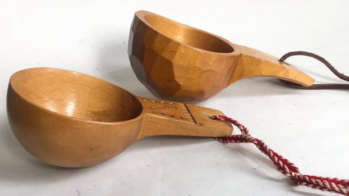 | ハンドメイドされたスウェーデンド製の木製のカップ コーサ フィンランドではククサとよばれるものです。、ピクニックなど屋外での飲食に使われるもので暖かい飲み物や冷たい飲み物 食器として使われたりもします。北欧で1400年代から作られている工芸品 今回入荷したコーサは南スウェーデンのFogdarpl製とスウェ―デン北部 storlie製です |