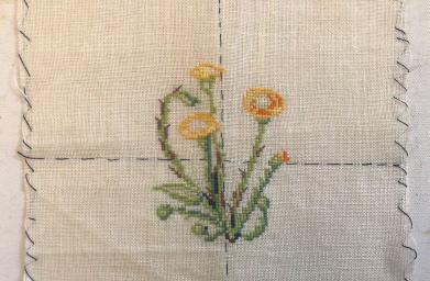 麻布に刺繍した作品(半分以上刺繍されています) 44グラム