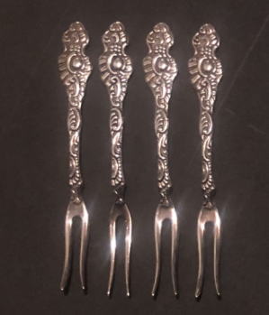ニルスヨハン社のデザートフォーク4本。 Extra pn ns ALP Nilsjohan swedenの刻印(1本だけALP)が入っています