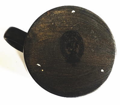 | 白い点は釉薬をつける過程でできたもので当時の製品によくみられるものです。 Gustavsberg のマークCOQコック(おんどり)。オーブンセーフ(耐熱性)とプリトされています。 |