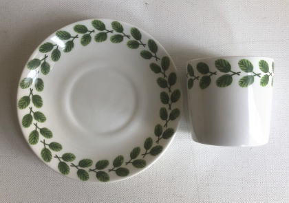 リンドベリらしいかわいらしい葉っぱのデザインのカップアンドソーサーです。