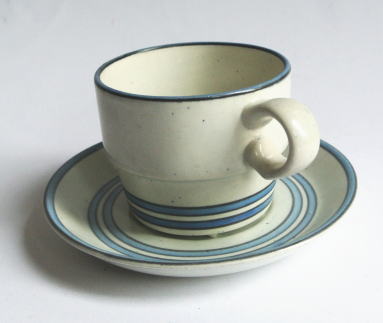 Stig Lindbergの後期のデザイン DARTコーヒーカップ、LUモデル 手書きされたブルーと黒のライン