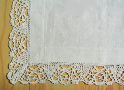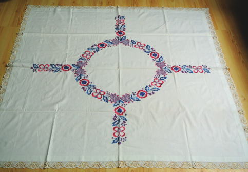 のテーブルクロスです。たくさんの時間を費やして刺繍された大きめサイズのテーブルクロスです まわりにはレースがあしらってあります