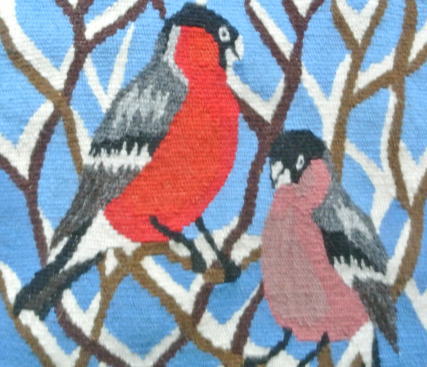 2羽の小鳥が織り上げられたフレミッシュ織作品 、壁掛けとして仕上げられています。