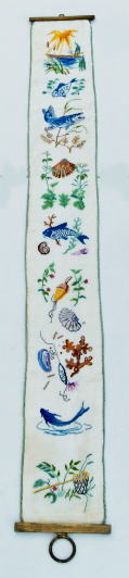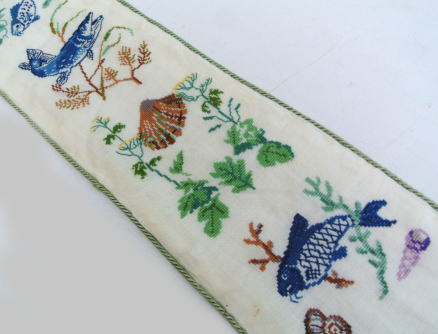 いろいろな種類の魚や貝 涼しげなデザインの刺繍タペストリー