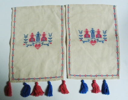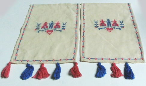 刺繍糸と同色のタッセルが 左側は5個 右側は3個ついていますディナーテーブルのセッティングに使うものだそうです