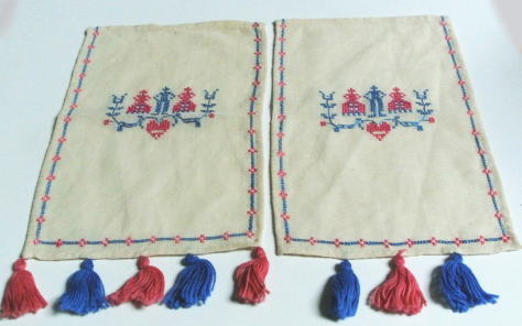 刺繍糸と同色のタッセルが 左側は5個 右側は3個ついていますディナーテーブルのセッティングに使うものだそうです