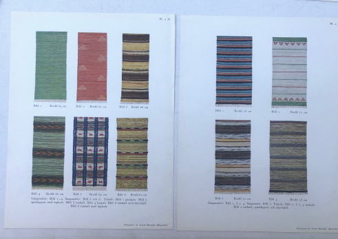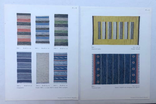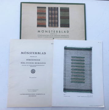 ヘムスロイド協会から69年前に発行されたスウェーデンの織資料集(作品写真シート、織り方解説冊子)良いデザインの trasmattor (裂き織)が紹介されています