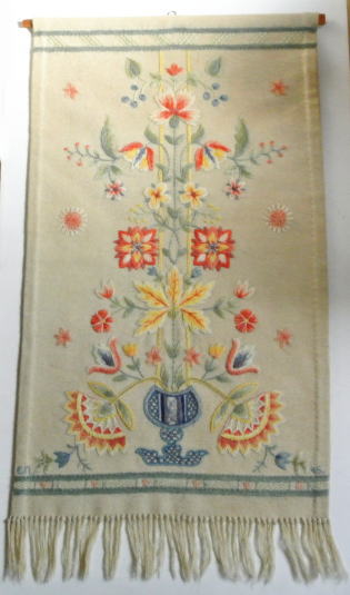 細部まで丁寧にきれいな色合いでお花が刺繍されたウール刺繍タペストリー