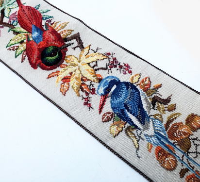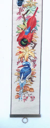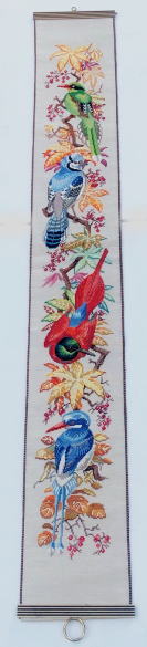 デンマーク、Eva Rosenstandのロングサイズのタペストリー、4種のとり 構図、色合いともに素晴らしいクロスステッチ刺繍 たくさんの時間を費やして刺繍された作品です ,裏地も付いていて丁寧に仕上げられています。