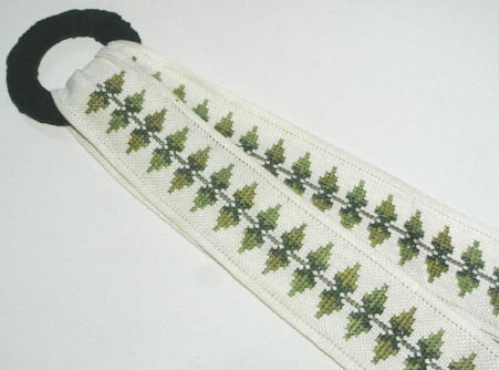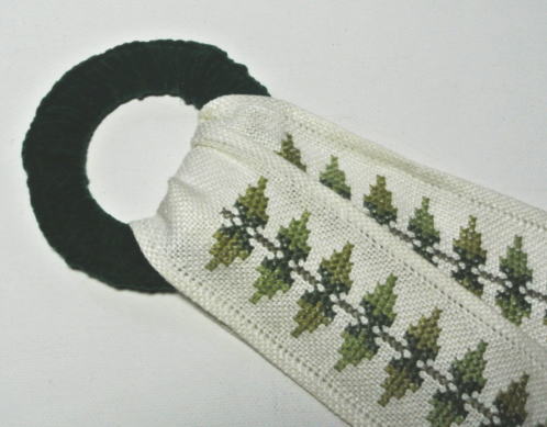 葉っぱのクロスステッチ刺繍のかわいらしいデザインのトレイハンガー