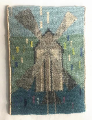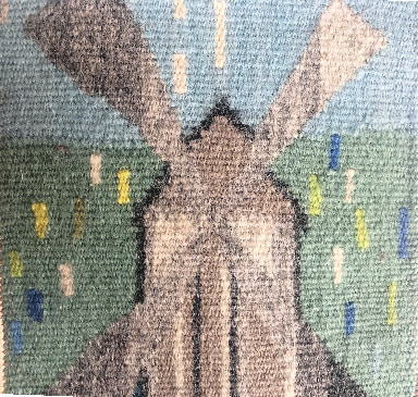 スウェーデンのフレミッシュ織り作品、風車がきれいに織られた作品です。