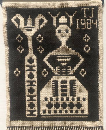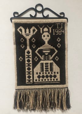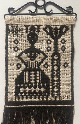 スウェーデン、BOHUSで織られたフィン織り、2重織りは紀元前200年の昔から、北欧では中世から行われた歴史の長い織技法です。典型的なフィン織のモティ―フ プリンセスです ハンガーがついています