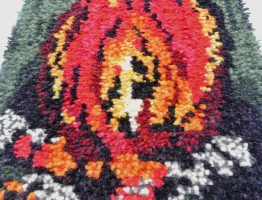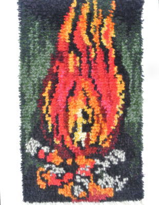 RYA RUG(リイヤ織/リイヤラグ)のタペストリー、白樺の木をつかった焚火のようなデザインです