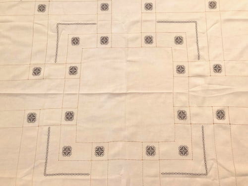 Svartstick黒糸刺繍とHalsomホールソム刺繍の刺繍法をつかって刺繍された大作 テーブルクロスです。