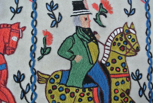 dalamalningと呼ばれるスウェーデン、ダーラナ地方に伝わる絵画を題材にしたウール刺繍作品 大作 、ウール刺繍用に織られた布に刺繍された素晴らしい作品です、