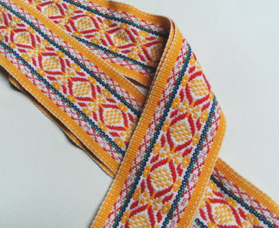 トレイハンガー 赤、黄、青の織模様