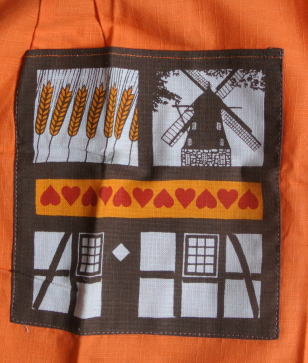 南スウェーデンの昔家、風車、麦がプリントされたエプロンです、、、
