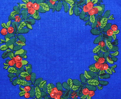 手染め工房ヨブス社のプリントクロスです。リンゴンベリー(こけもも)が色鮮やかに染めつけられています。